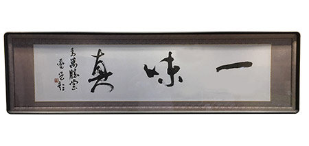 The calligraphy by Mr. Kikou Miyazaki is on display inside the shop. Mr. Kikou Miyazaki, a calligrapher, wrote it for our shop.